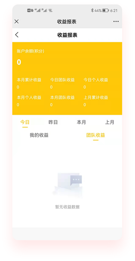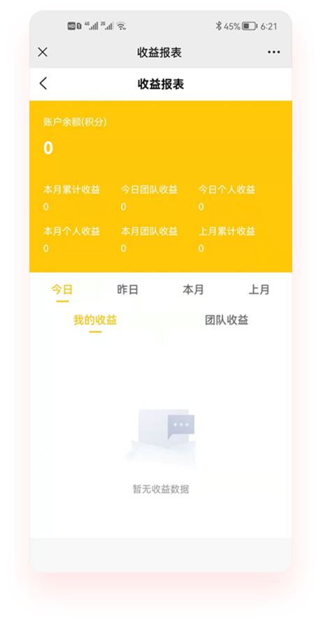 与APP数据完全打通,订单、收益报 表、团队粉丝全部保持实时更新